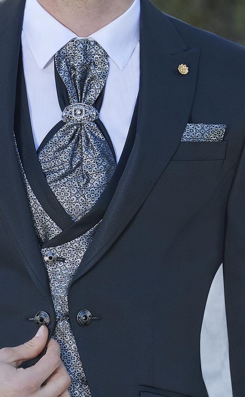 • Traje de novio completo Wedding negro brillante en mezcla de tejidos de lana