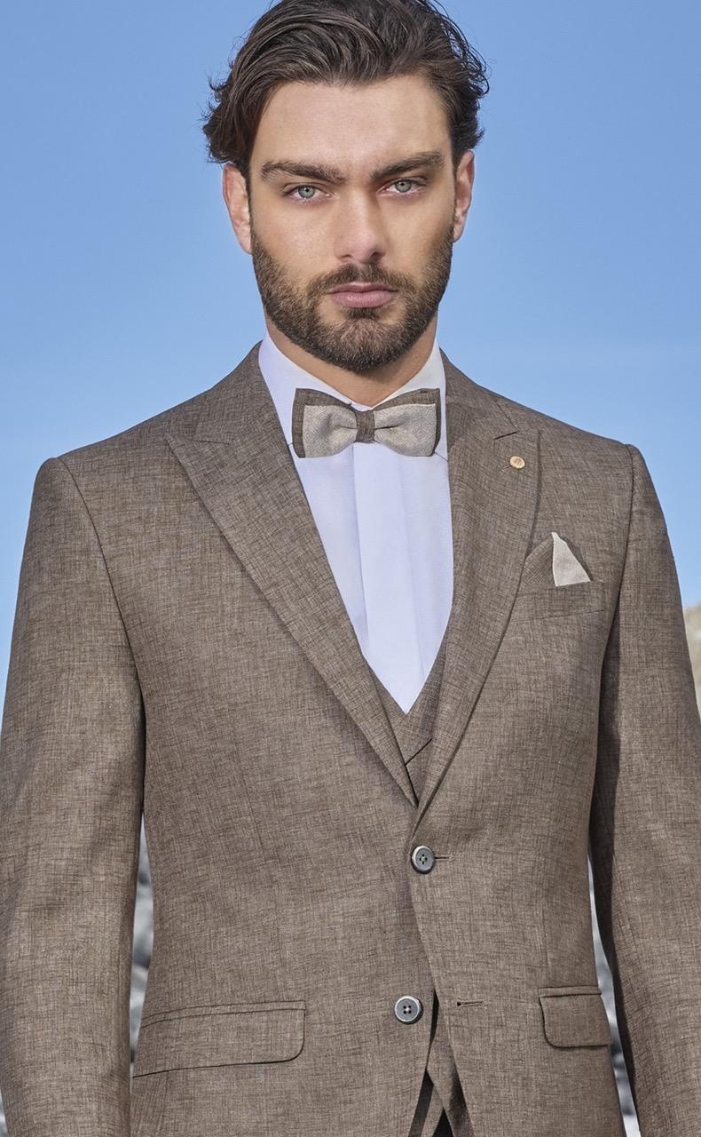 • Traje de novio Feel camel en mezcla de tejidos de algodón
