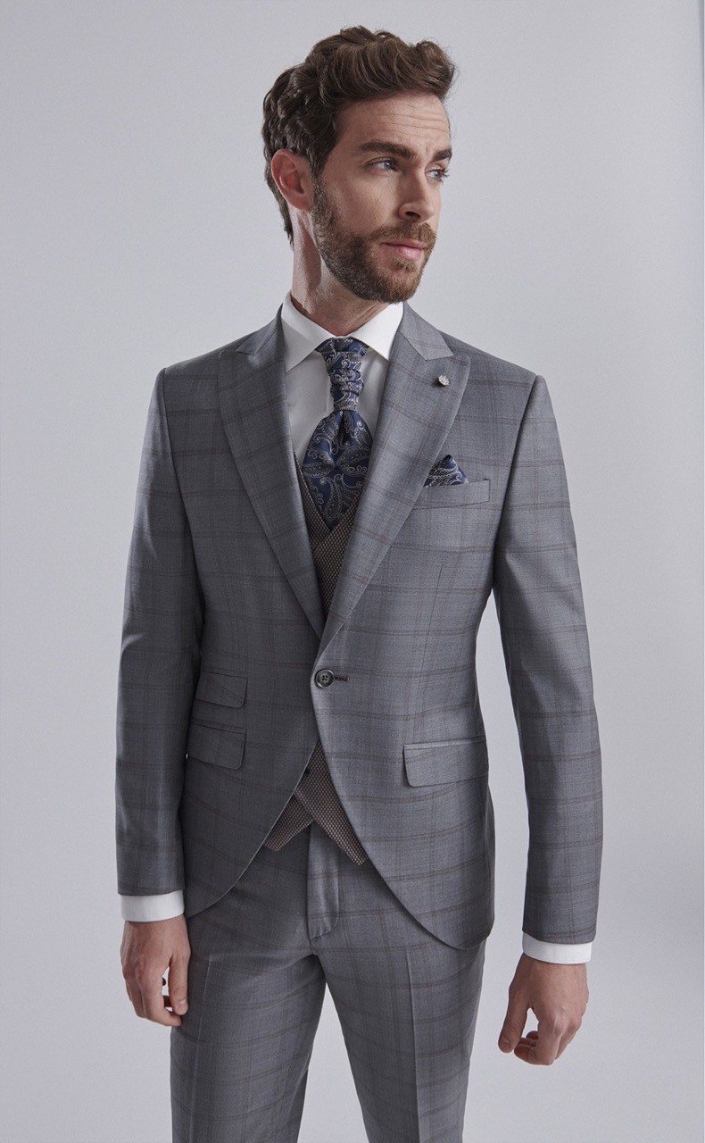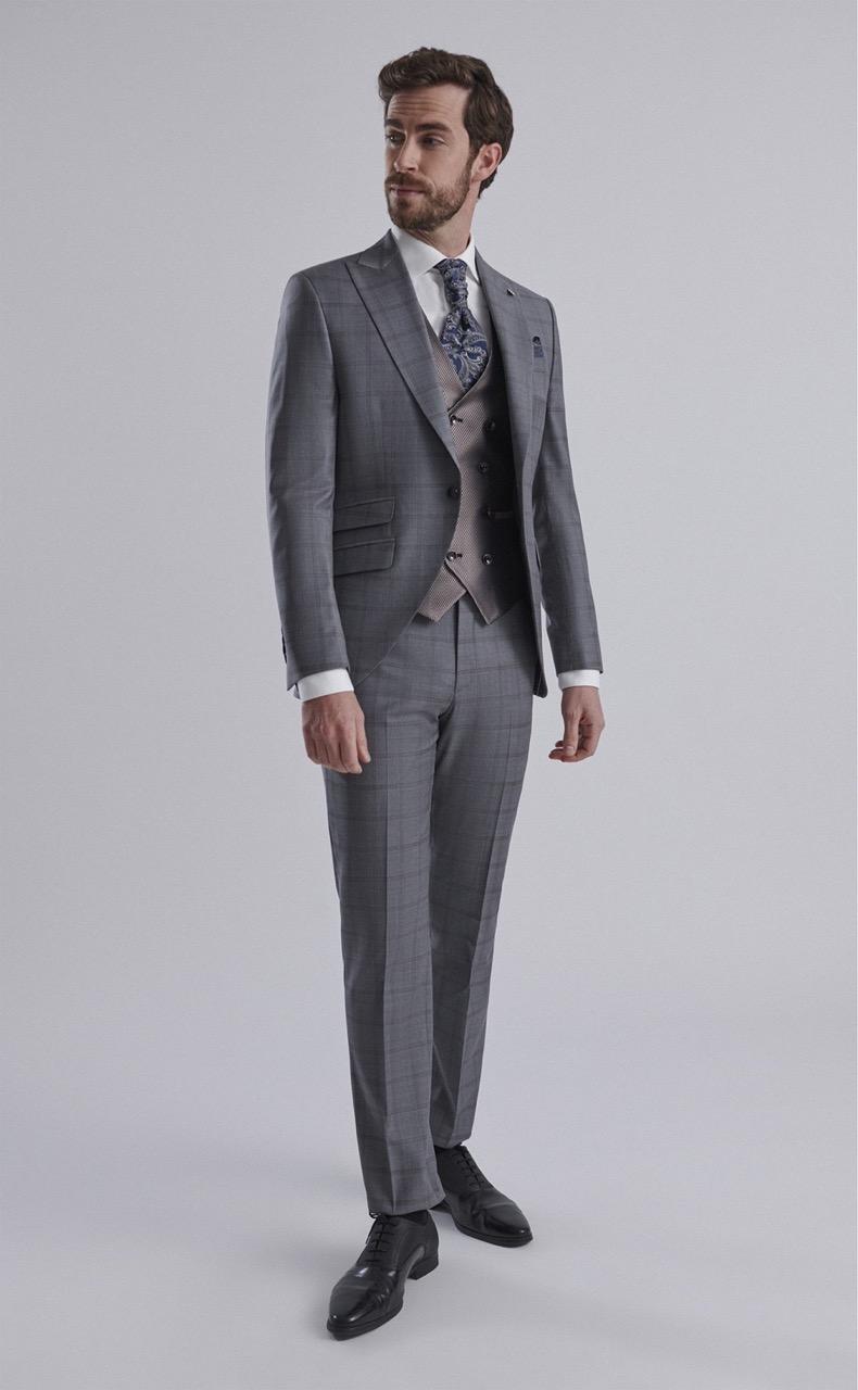 Traje de novio ETERNAL gris de cuadros lana e lycra 29.24.030