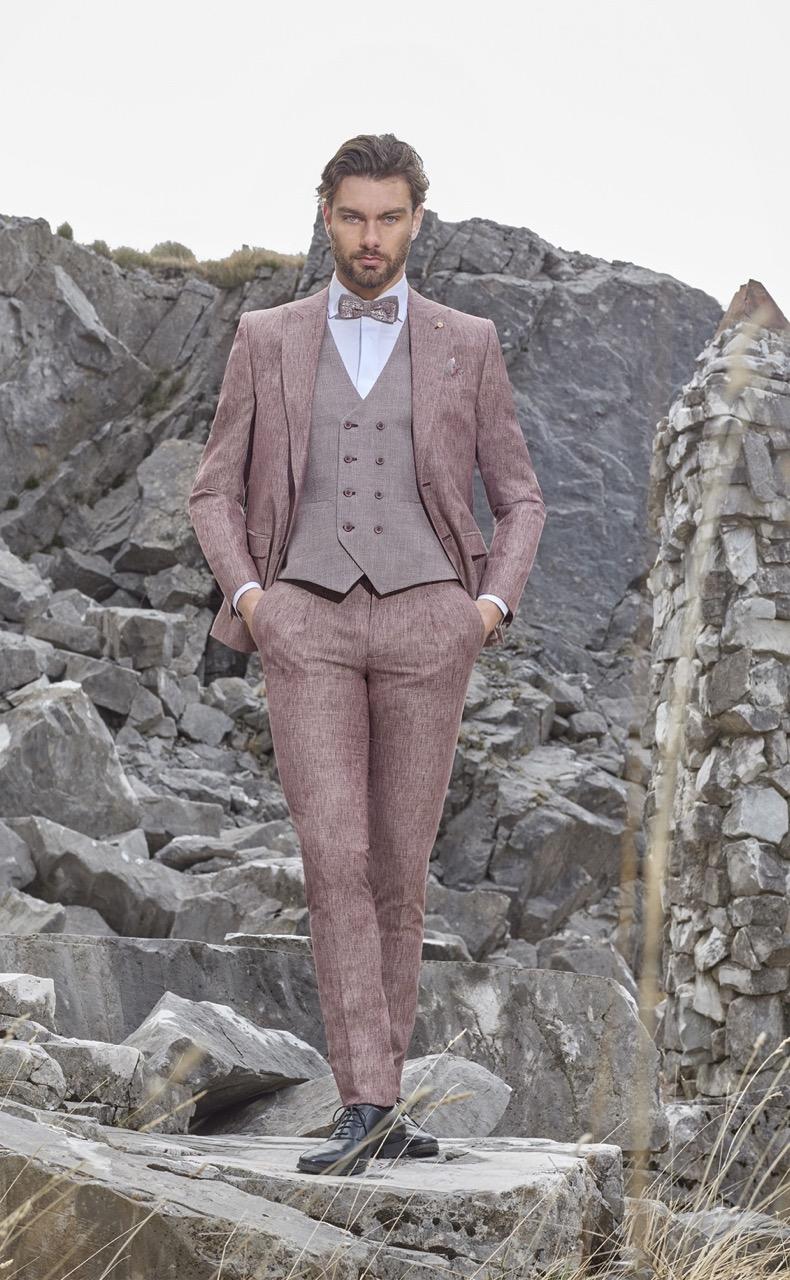 • Traje de novio Feel rosa en mezcla de algodón tejido