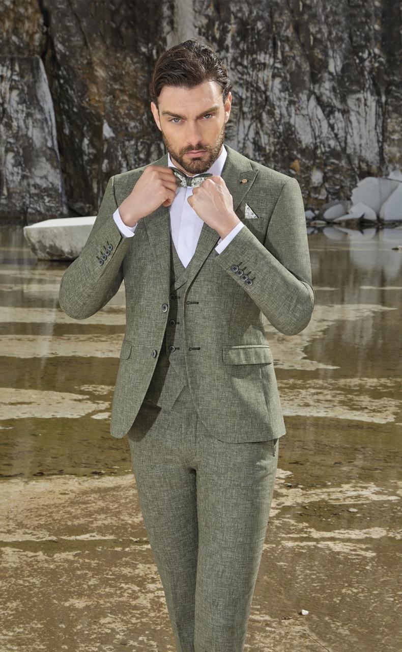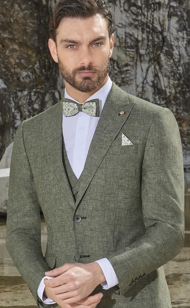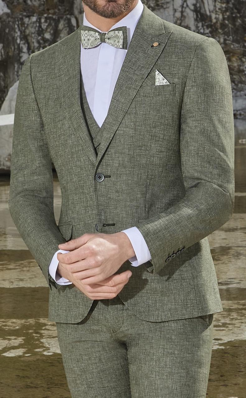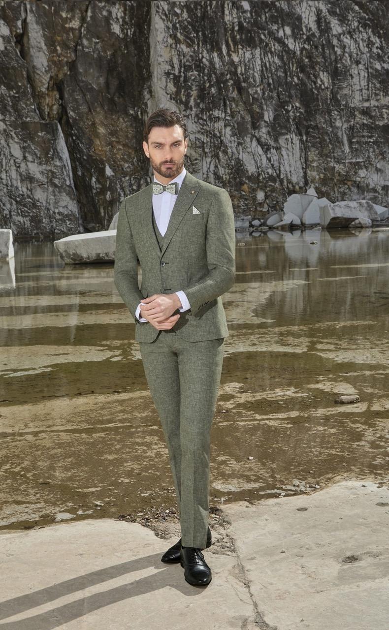 • Traje de novio Feel verde en mezcla de tejidos de lana